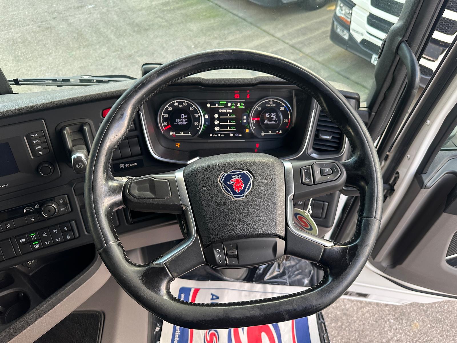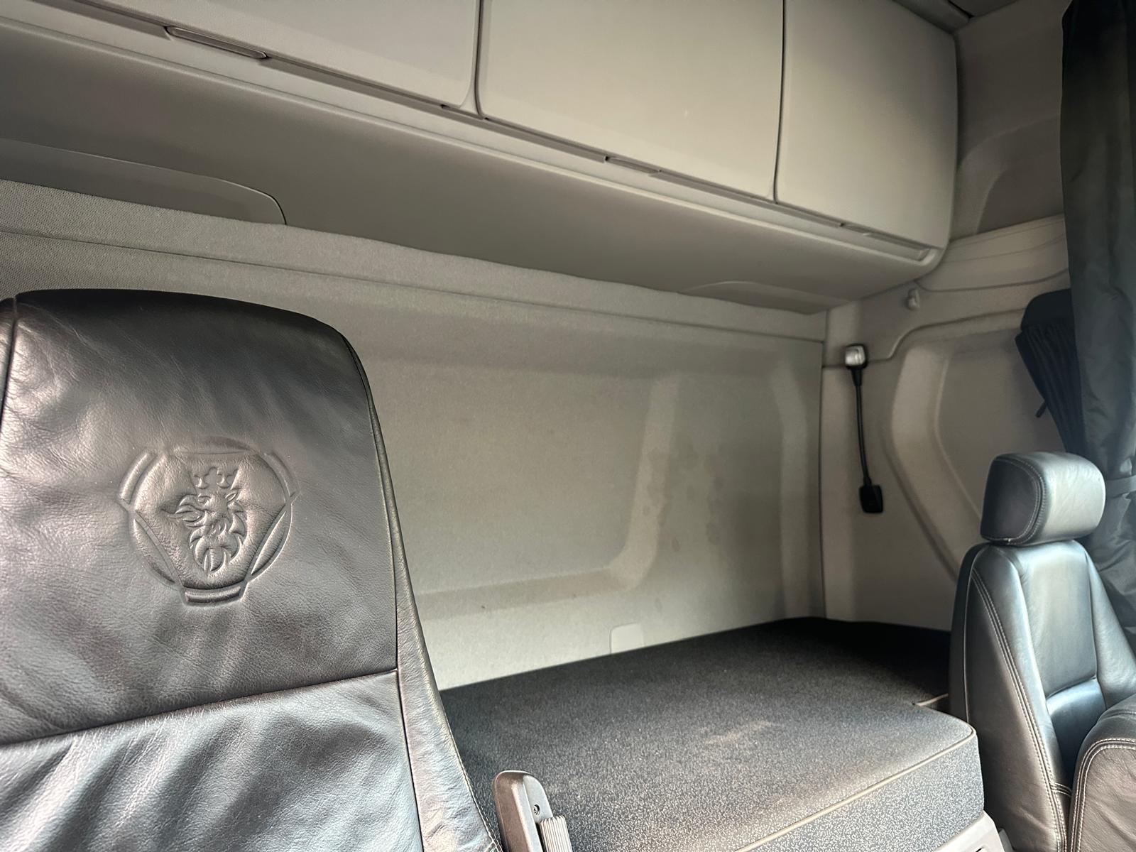 Leather seats, Fridge, Sky lights & Fog lights, Scania Infotainment System, Single Bunk with Rear Lockers, Side Skirts, Dual Hydraulics
