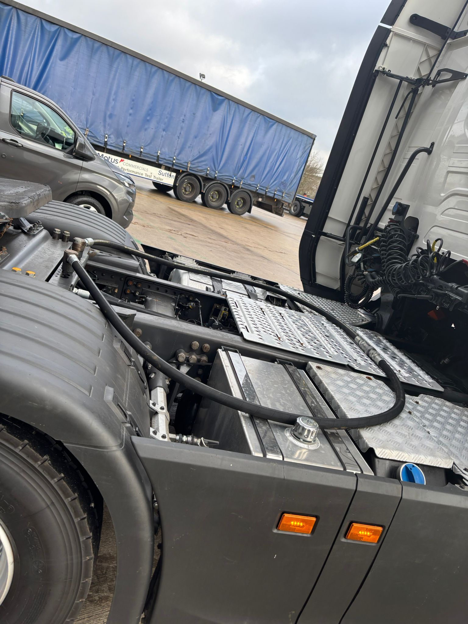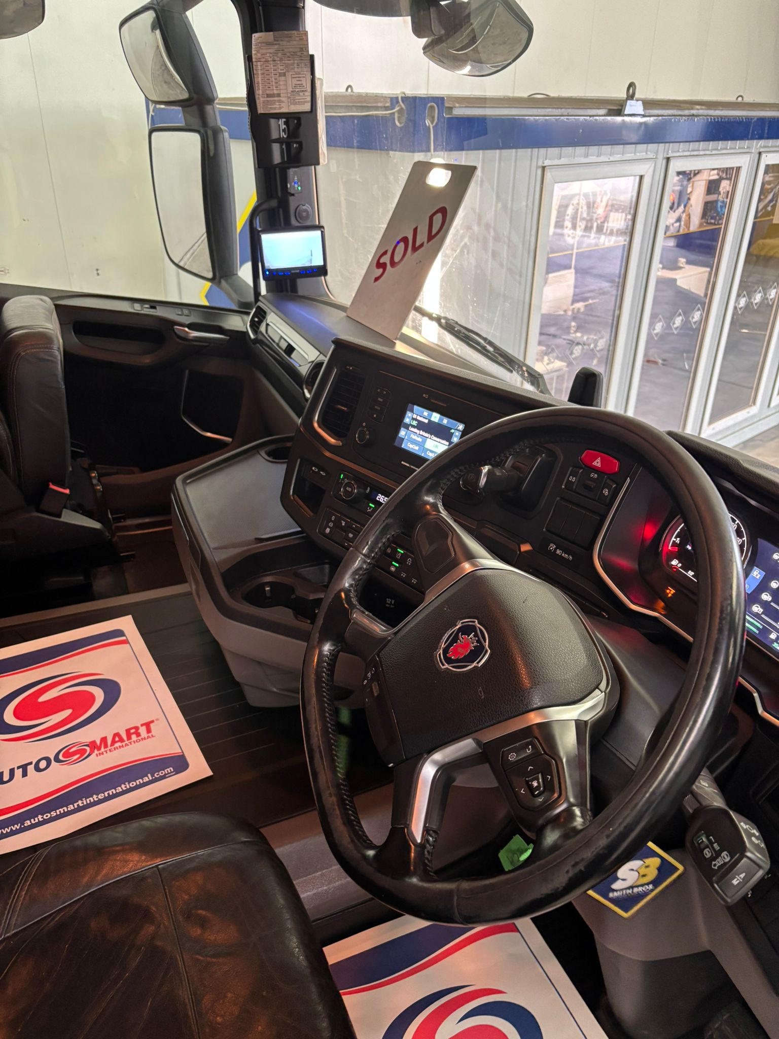 Leather Interior, Scania Premium Infotainment System, Fridge, Side skirts, Sky lights and fog lights, Single Bunk with Rear Lockers, Illuminated Headboard, Airhorns, Colour Coded, Power Blower