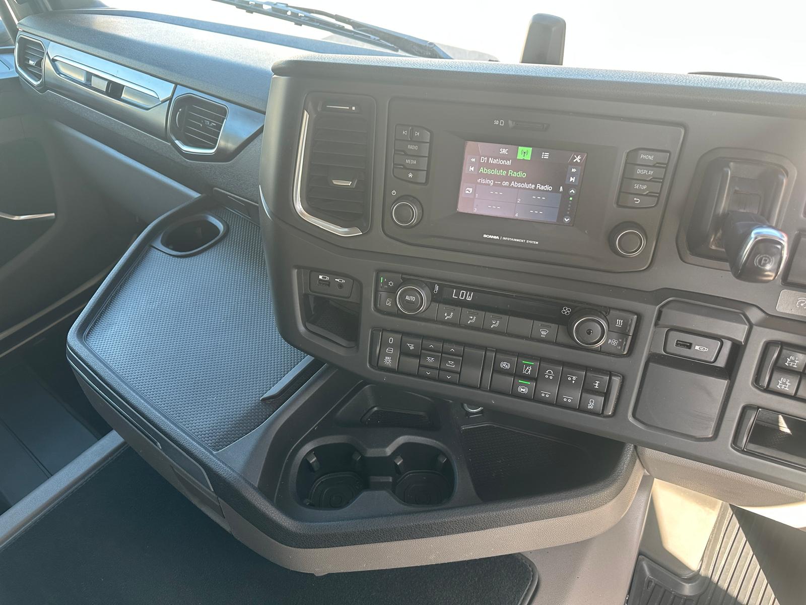 Leather Interior, Single bunk with Rear Lockers, Fridge, Spot lights & Fog lights, Scania Infotainment System, Side Skirts, Dual Hydraulics