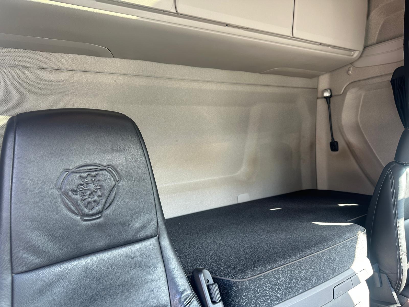 Leather Interior, Scania Infotainment System, Fridge, Side skirts, Sky lights and fog lights, Single Bunk with Rear Lockers