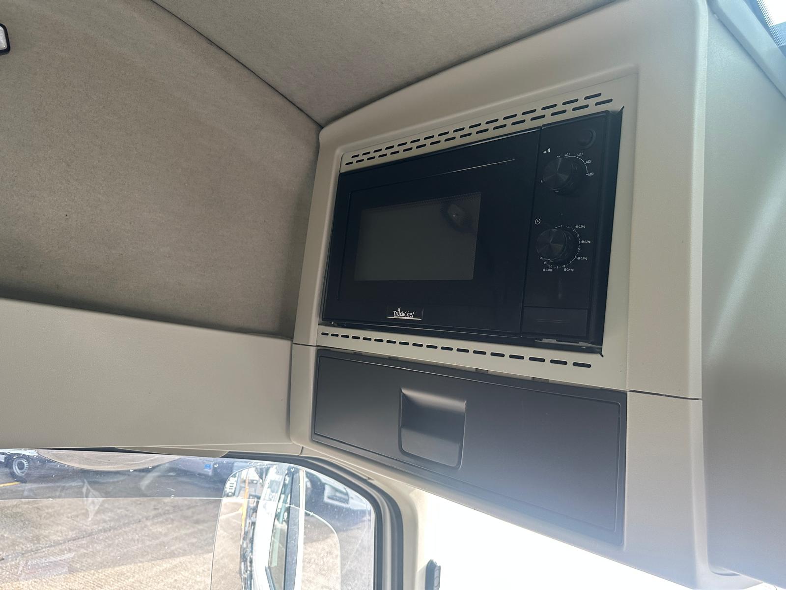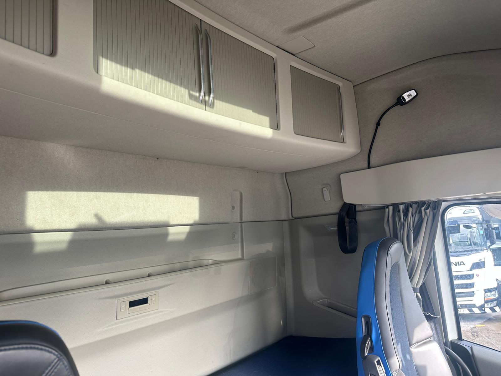 Fors Cameras, Fridge & microwave, Kelsa Hibar with lazers, Airhorns, Single Bunk with Rear Lockers, Alcoa Durabrights, Chassis locker, Fall Arrest Equipment, Rear Steer, Draw Bar Coupling, Beacons, Leather Interior, Rear in Cab Lockers, Sat Nav, Hydraulic Pull Out Bed