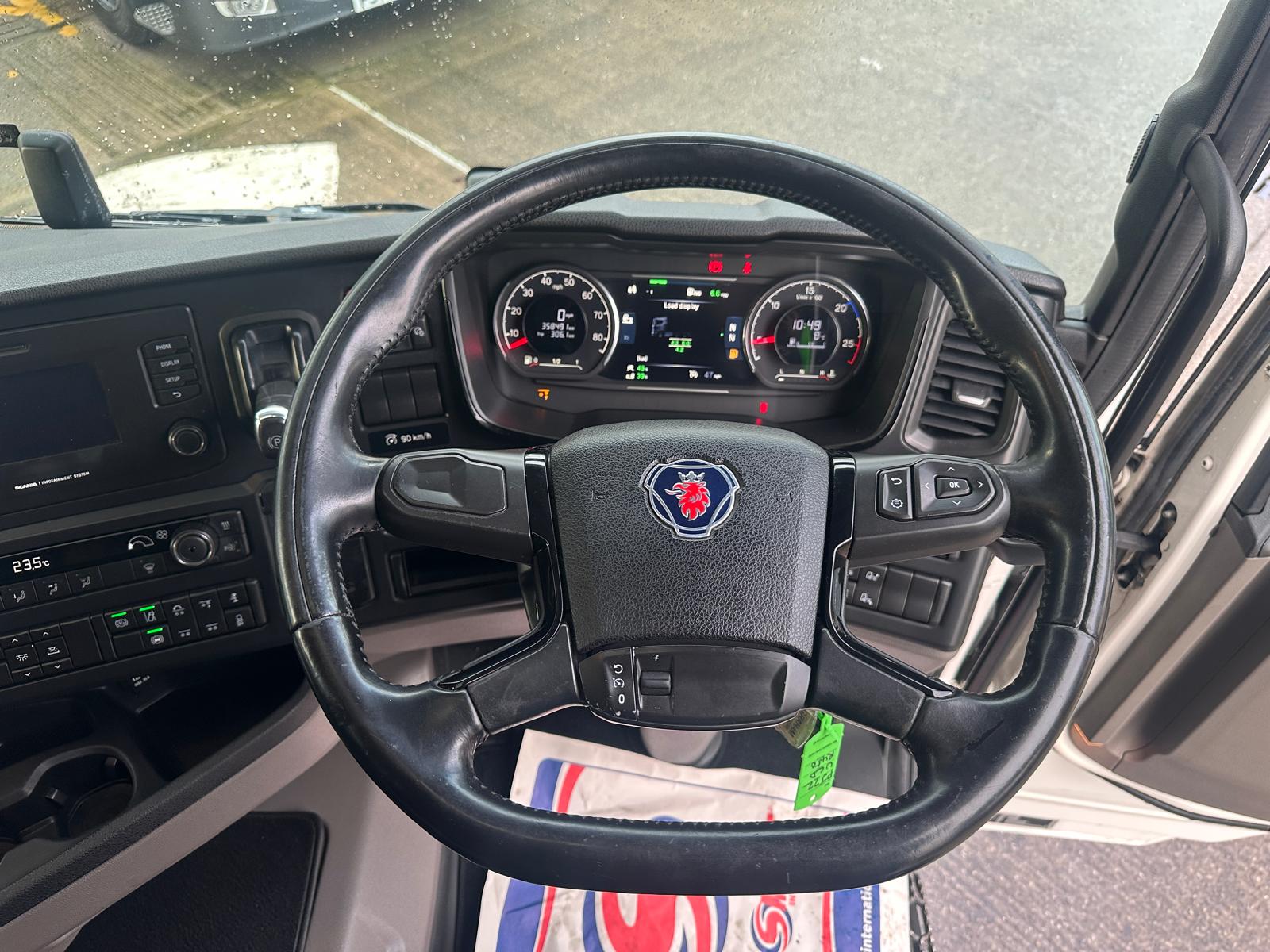 Leather seats, Fridge, Sky lights & Fog lights, Scania Infotainment System, Single Bunk with Rear Lockers, Side Skirts, Walking Floor Hydraulics