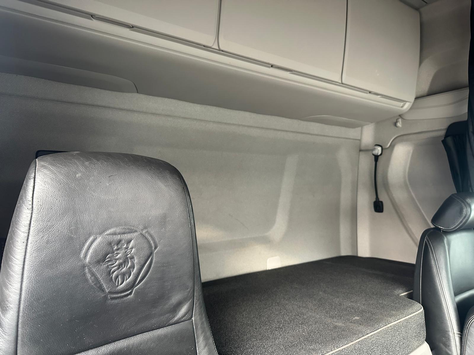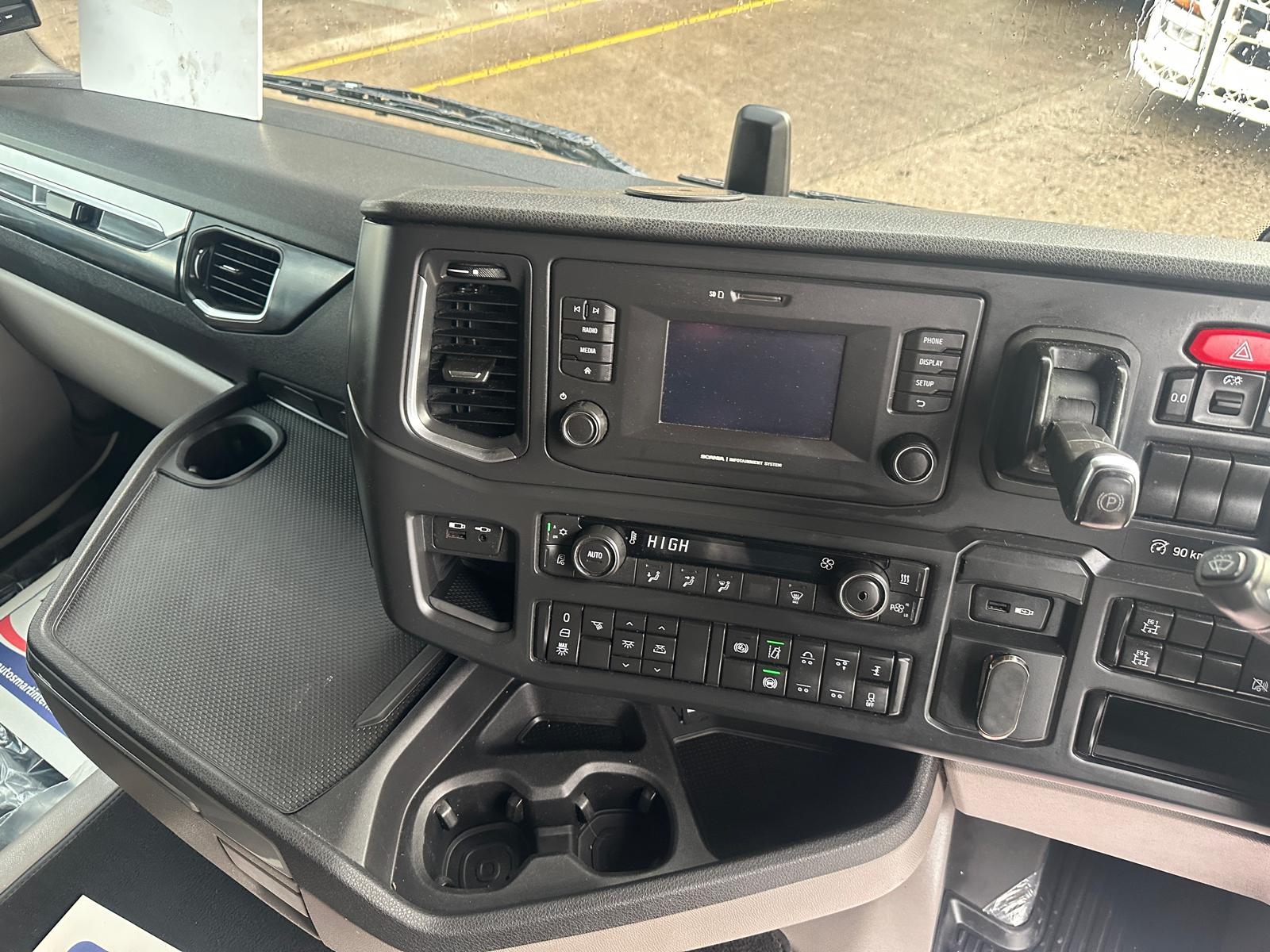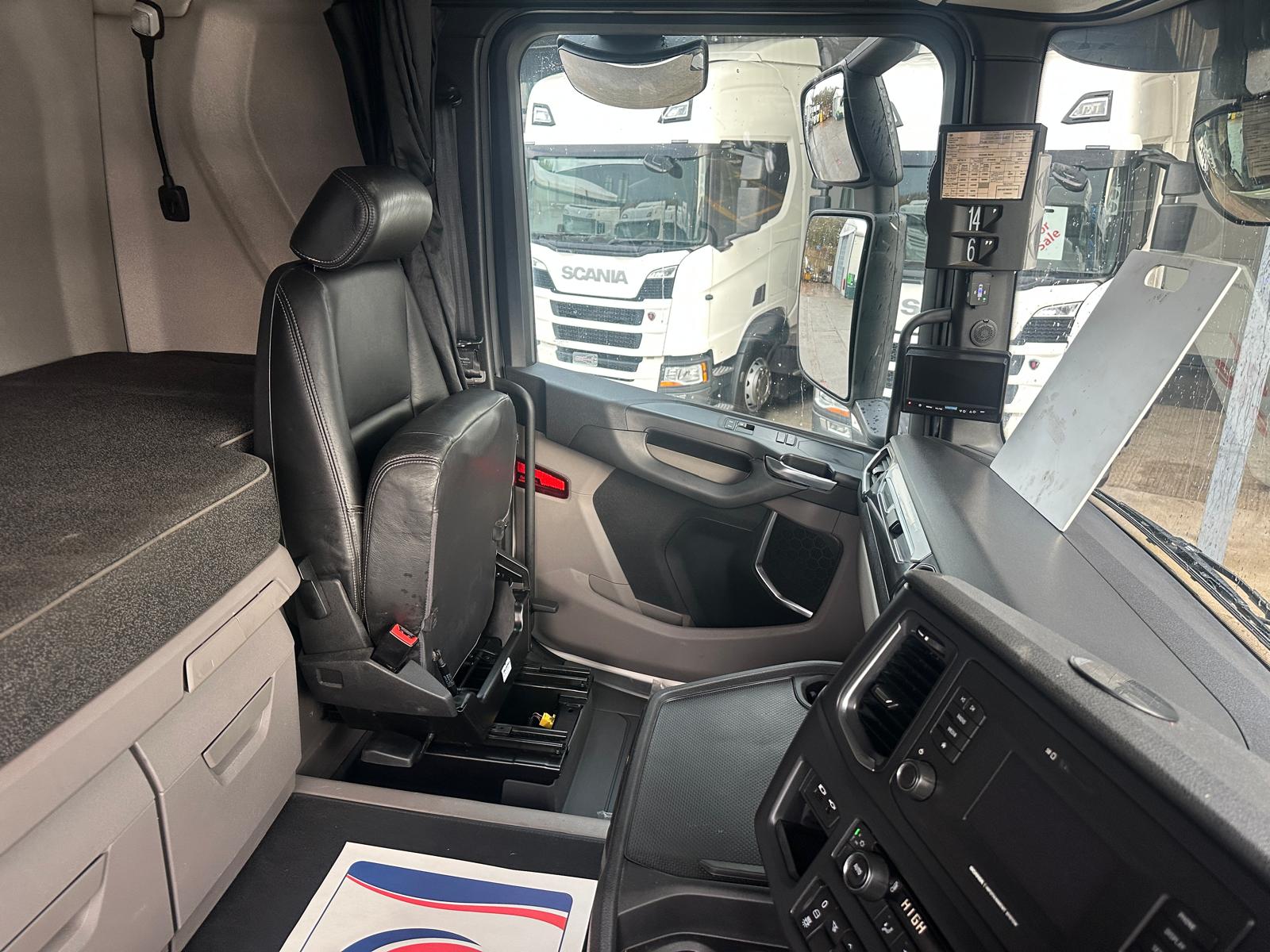 Leather Interior, Single bunk with Rear Lockers, Fridge, Side Skirt, Spot lights & Fog lights, Scania Premium Infotainment System, Beacons and Strobes, Chassis Locker, CB Radio, Phone Holder, Immaculate Condition