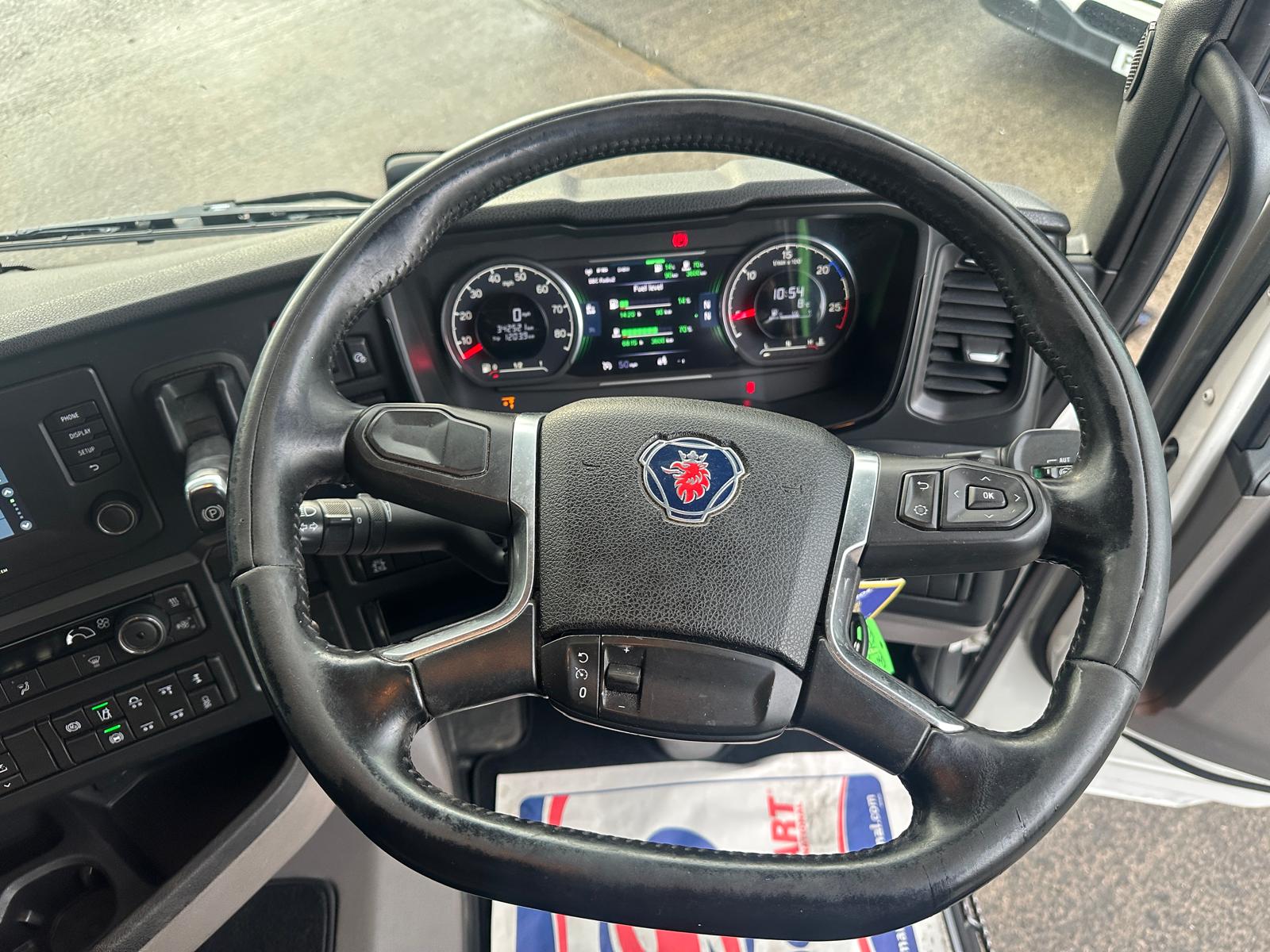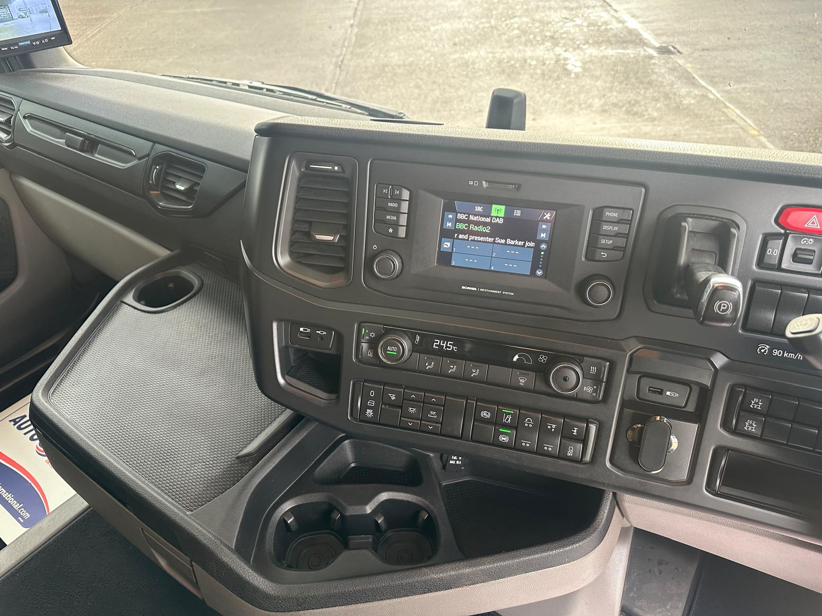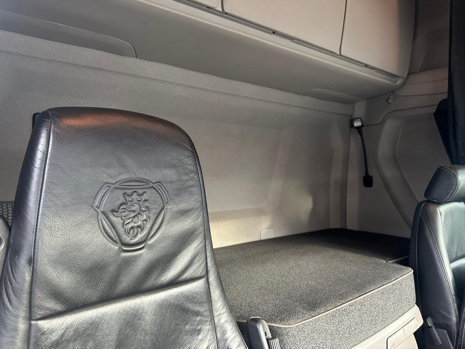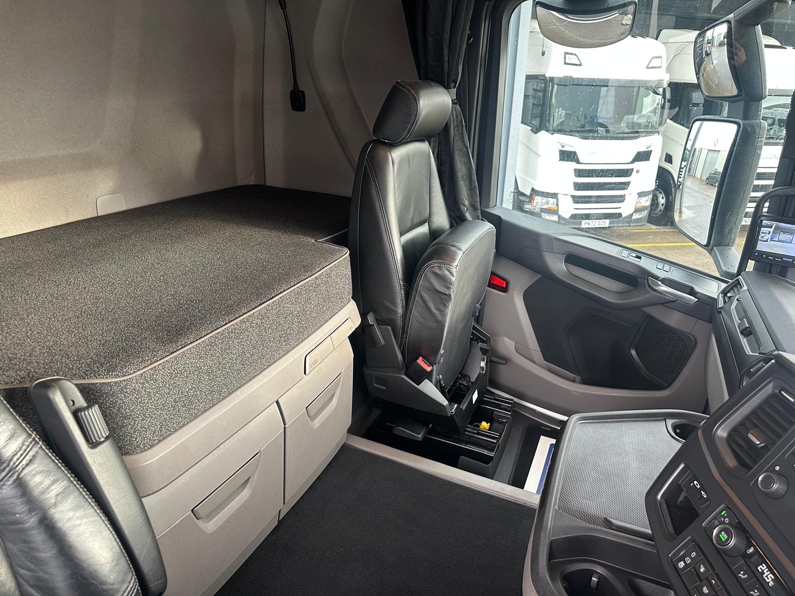 Leather seats, Fridge, Sky lights & Fog lights, Scania Infotainment System, Single Bunk with Rear Lockers, Side Skirts, Walking Floor Hydraulics