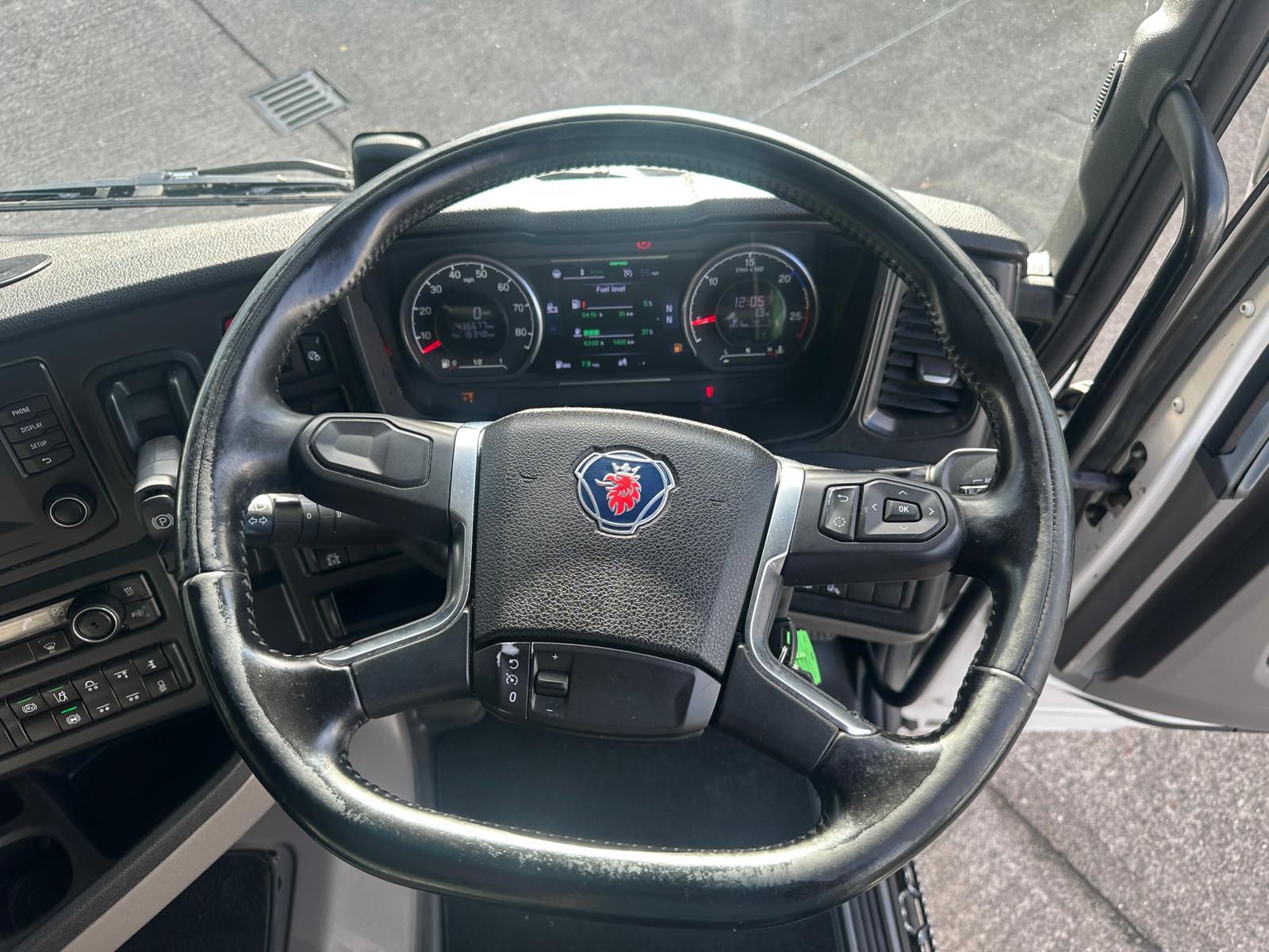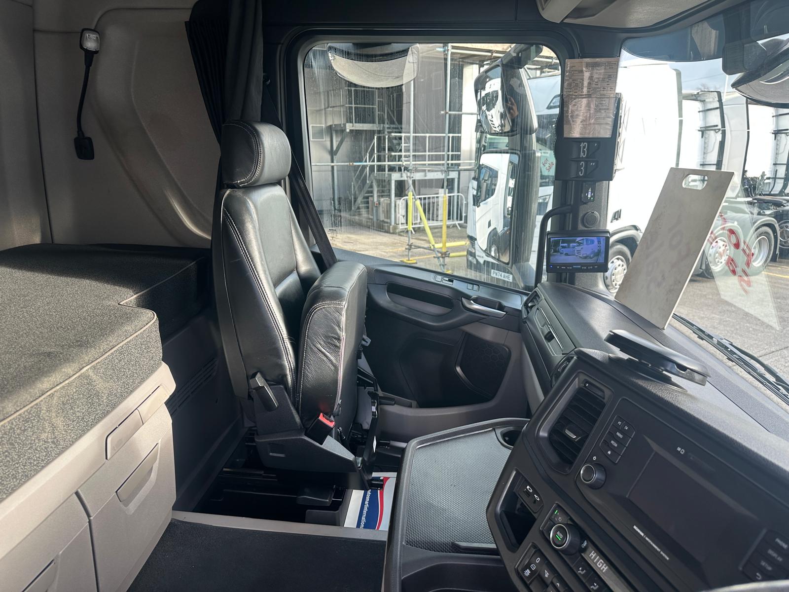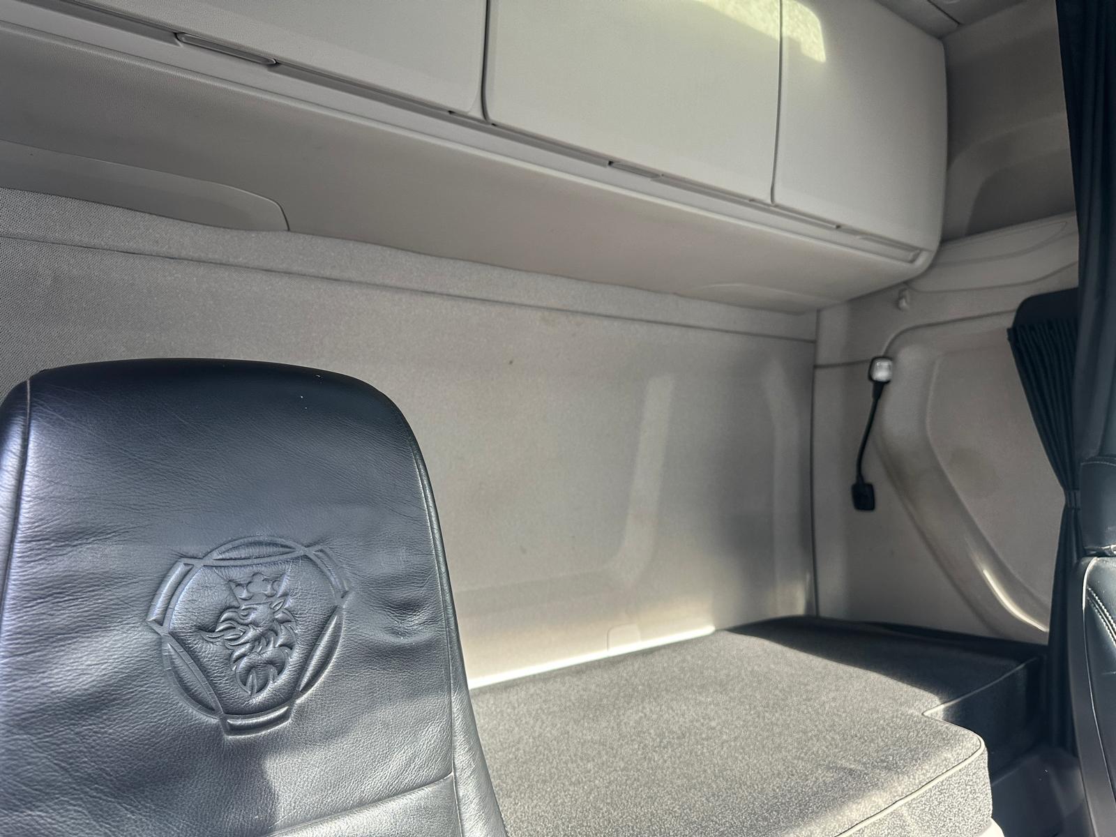 Leather seats, Fridge, Sky lights & Fog lights, Scania Infotainment System, Single Bunk with Rear Lockers, Side Skirts, Walking Floor Hydraulics