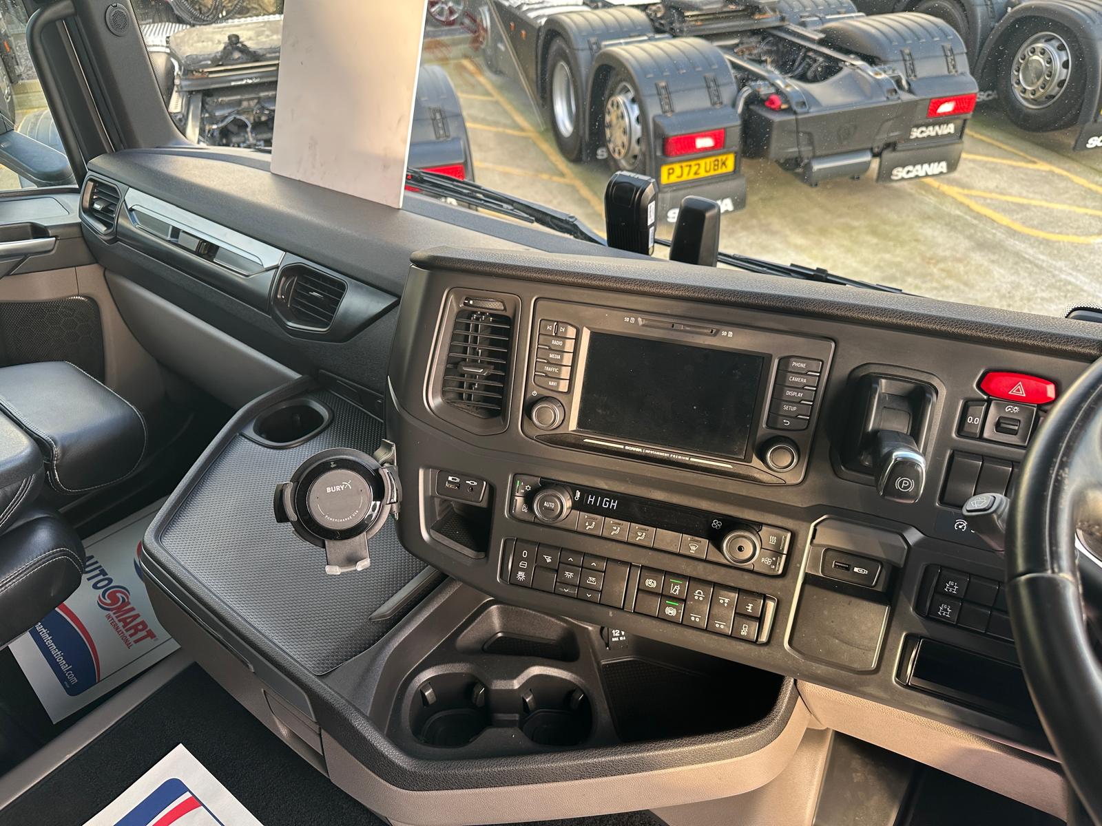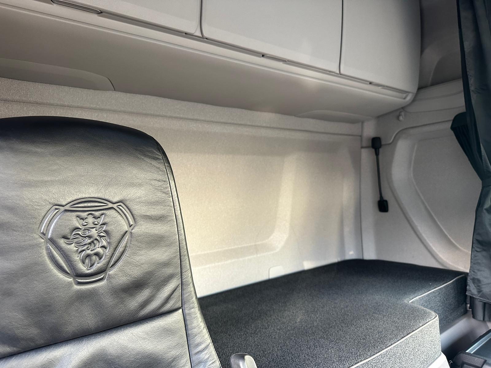 Leather seats, Fridge, Sky lights & Fog lights, Scania Premium Infotainment System, Single Bunk with Rear Lockers, Side Skirts, Walking Floor Hydraulics