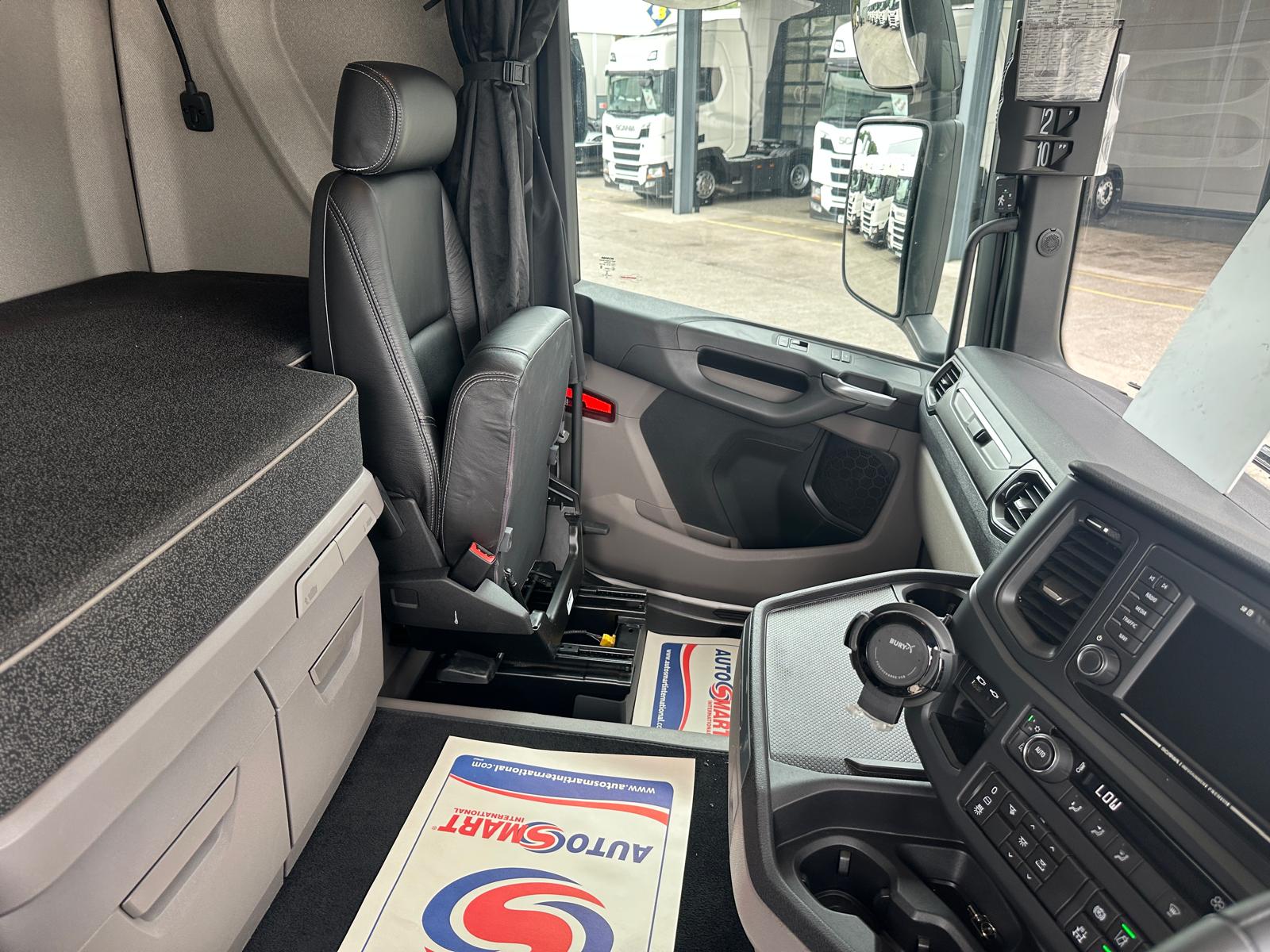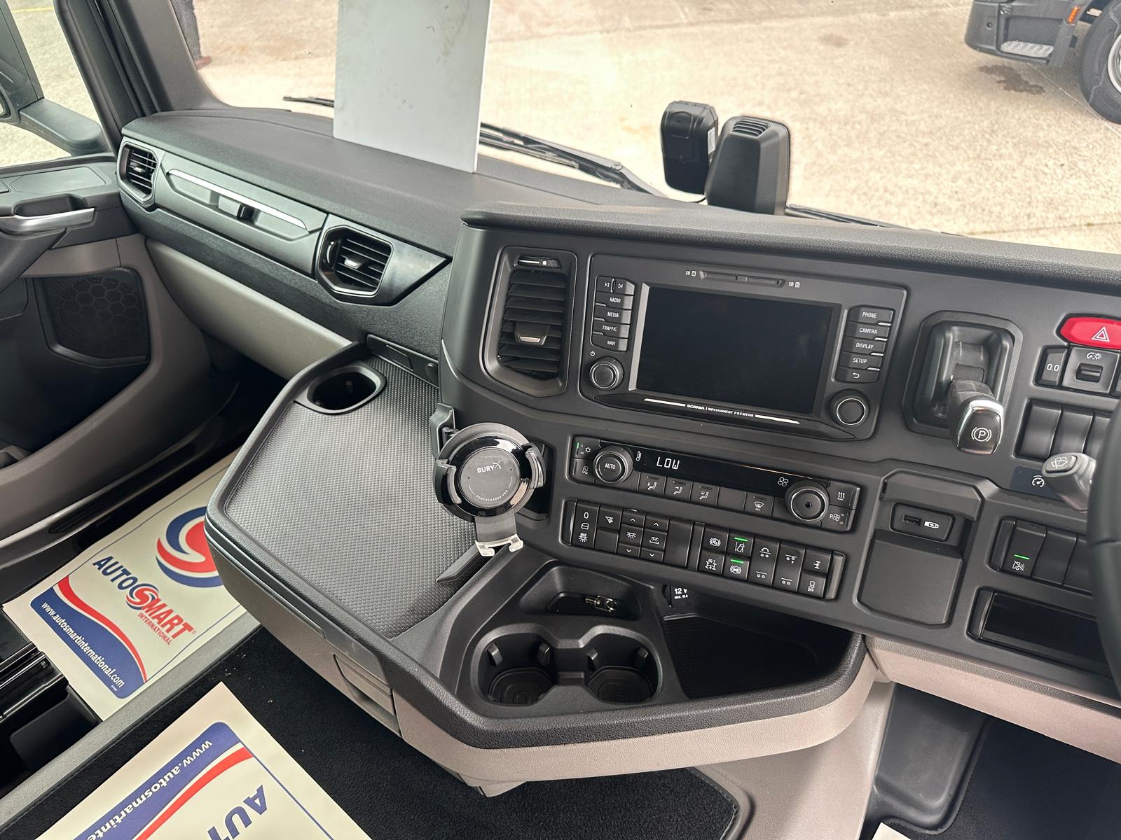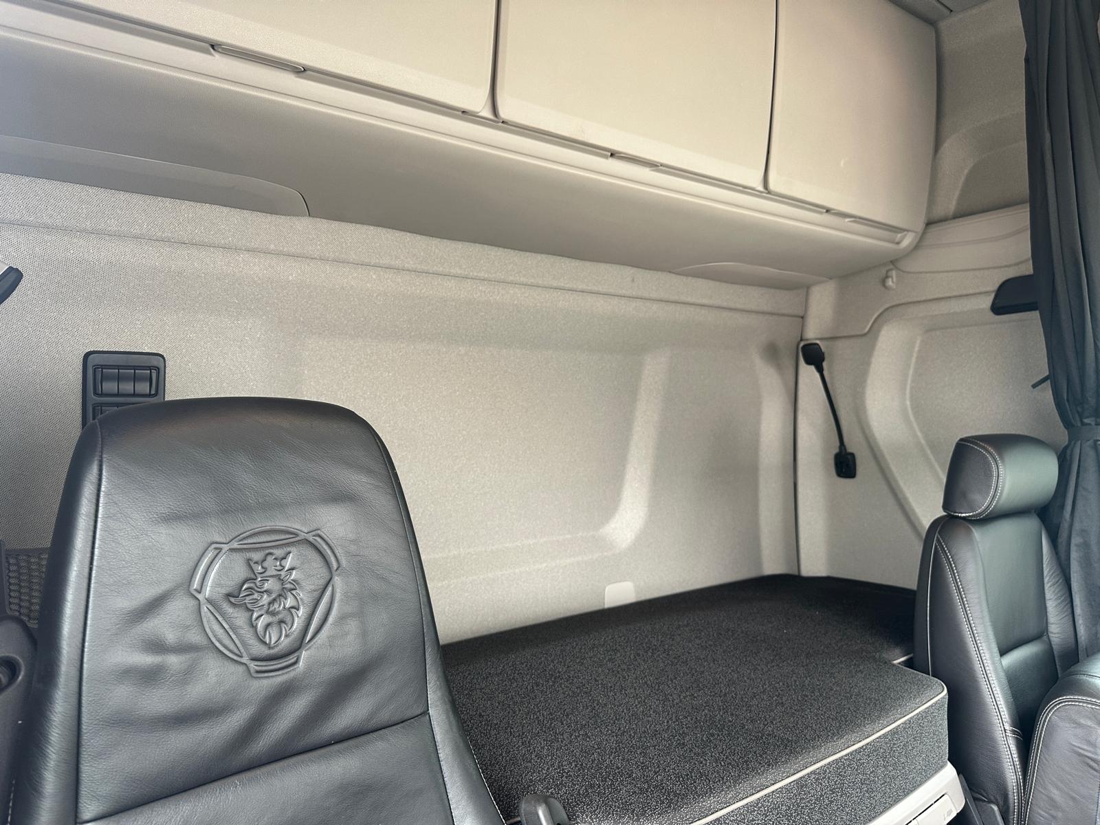 Leather Interior, Scania Infotainment System, Fridge, Side skirt, Chassis Locker, Sky lights and fog lights, Single Bunk with Rear Lockers, Beacons and Strobes, CB Radio, Phone Holder