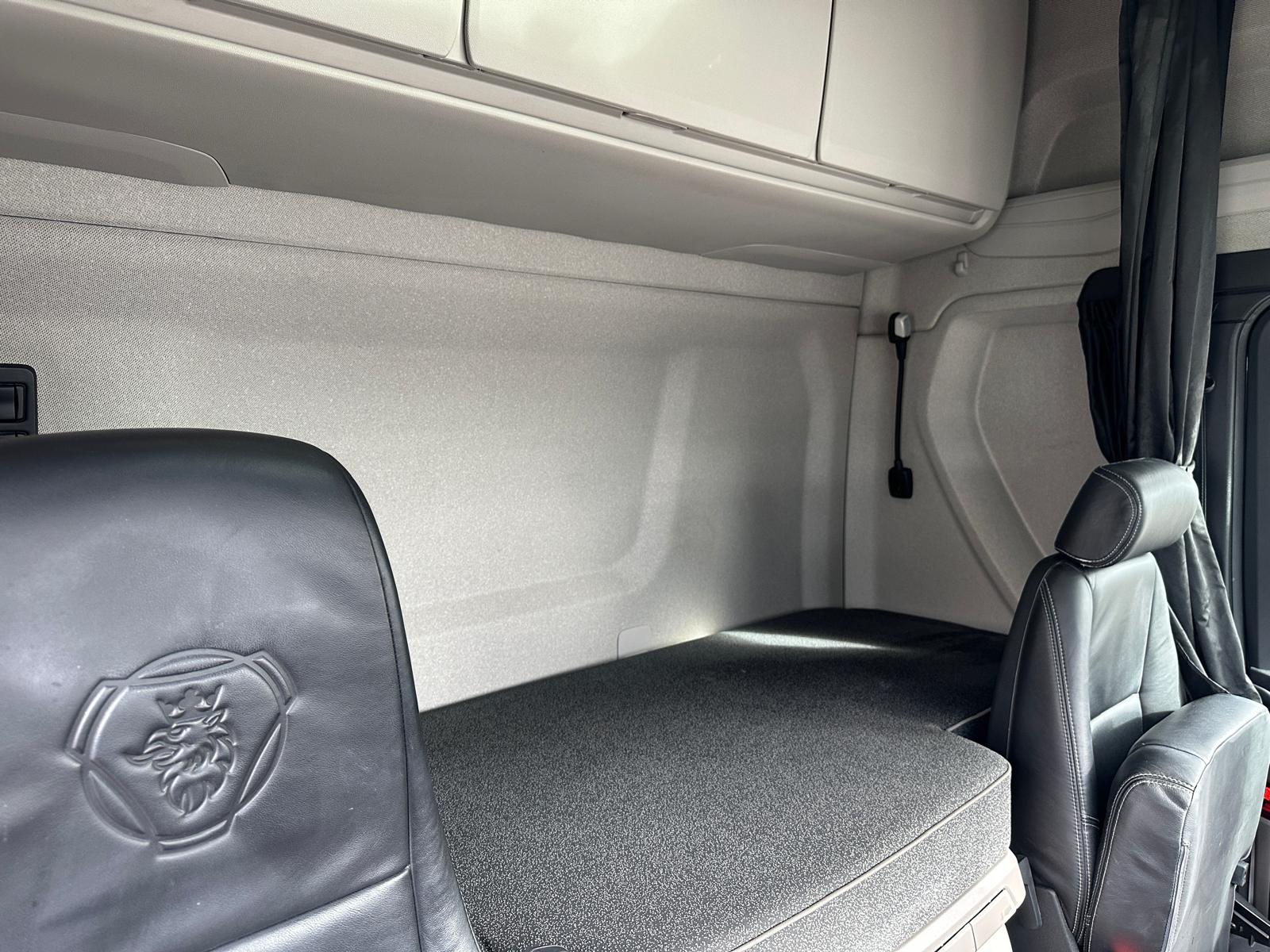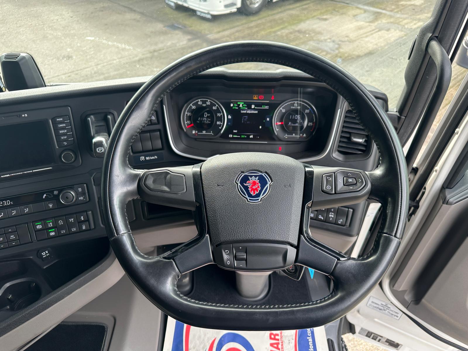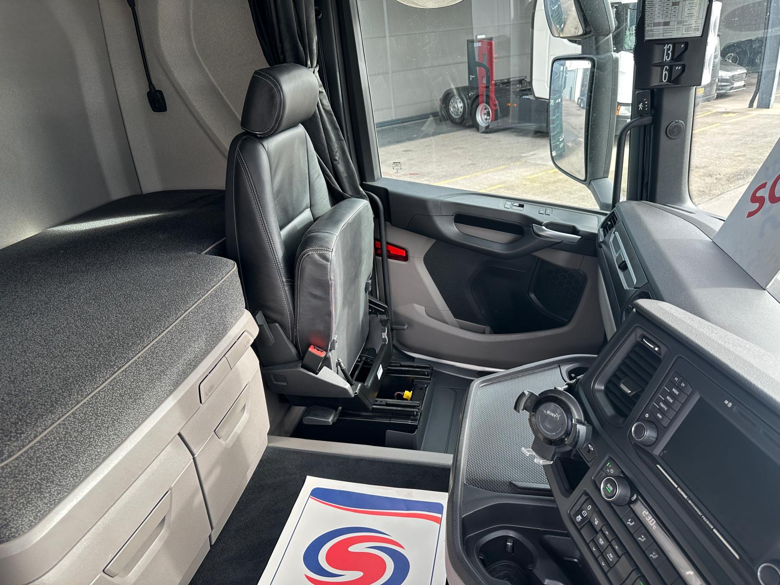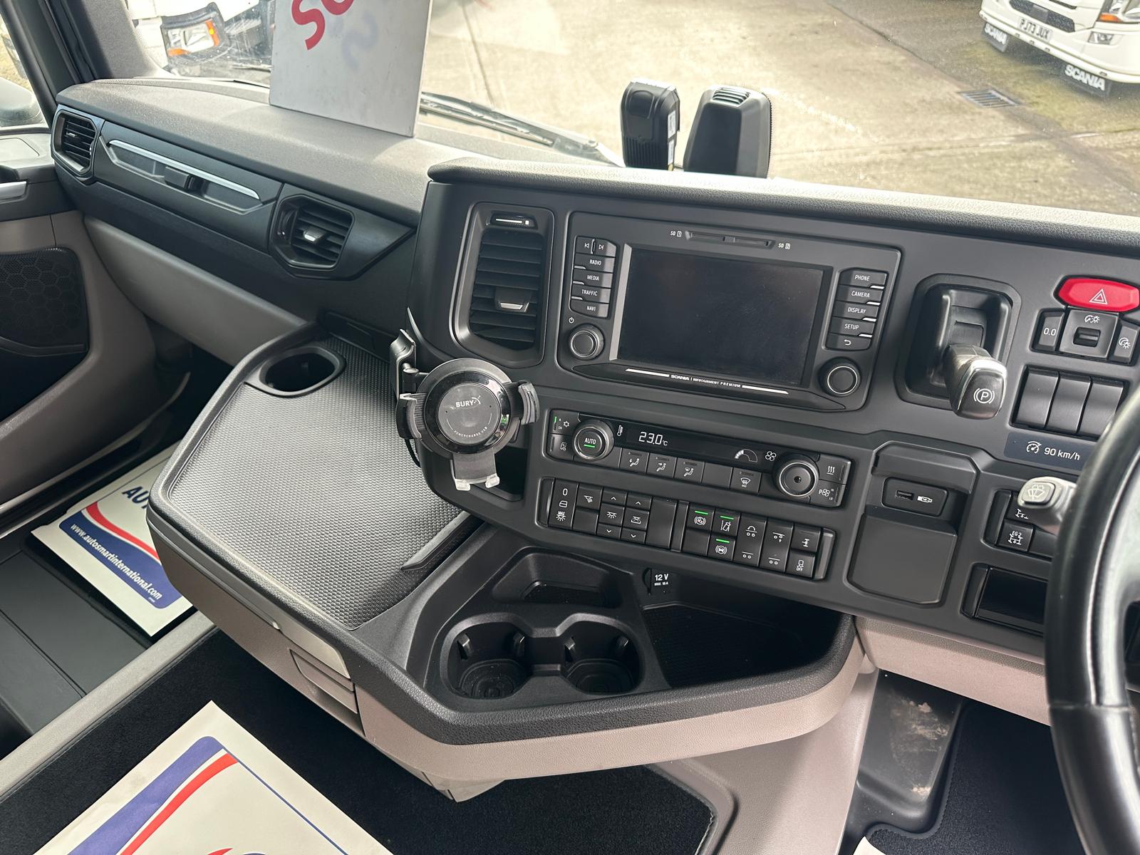 Leather Interior, Premium Scania Infotainment System, Fridge, Sky lights and fog lights, Single Bunk with Rear Lockers, CB Radio, Phone Holder, PTO Fitted, Immaculate Condition