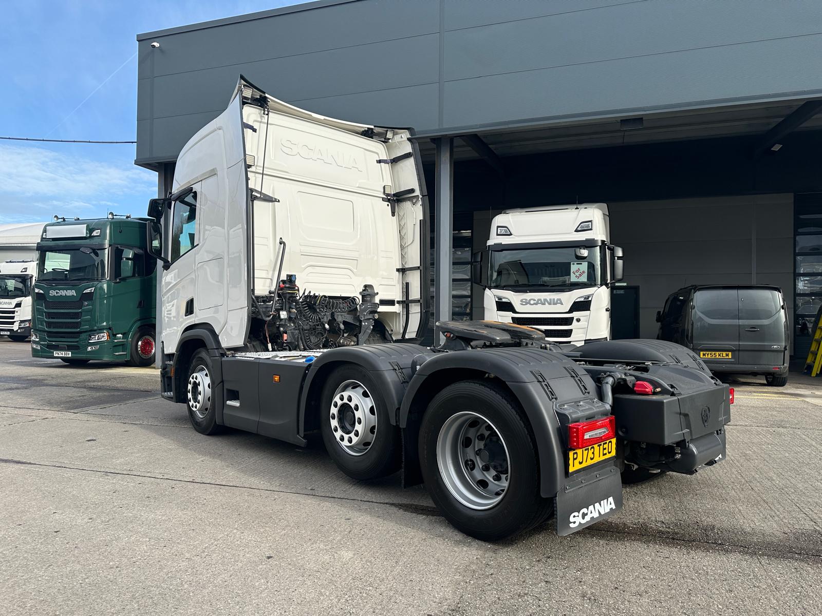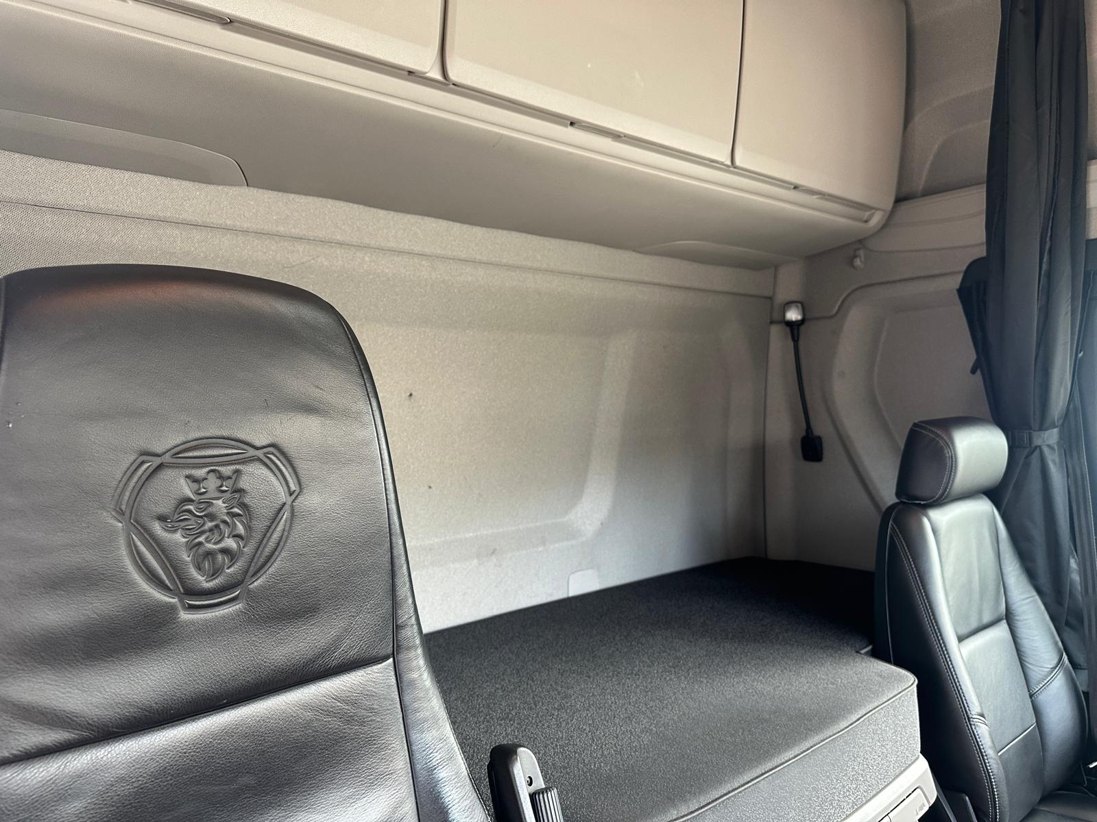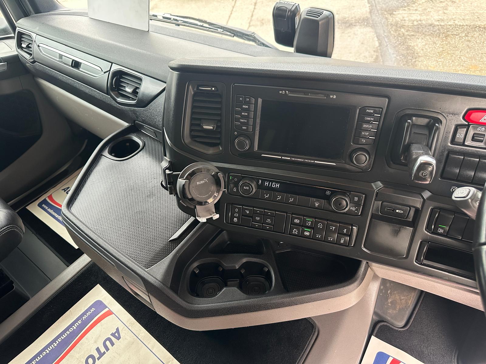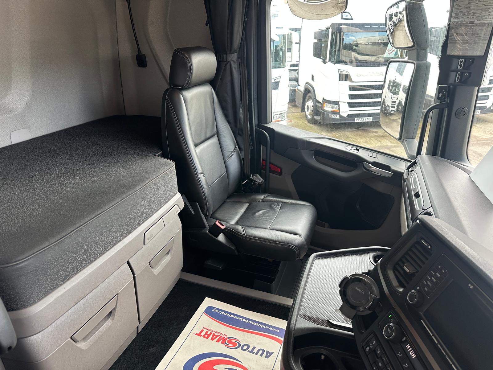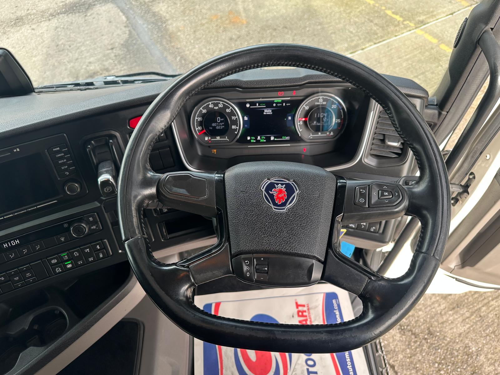 Leather Interior, Scania Premium Infotainment System, Fridge, Side skirt, Sky lights and fog lights, Single Bunk with Rear Lockers, Phone Holder, PTO Fitted, Immaculate Condition