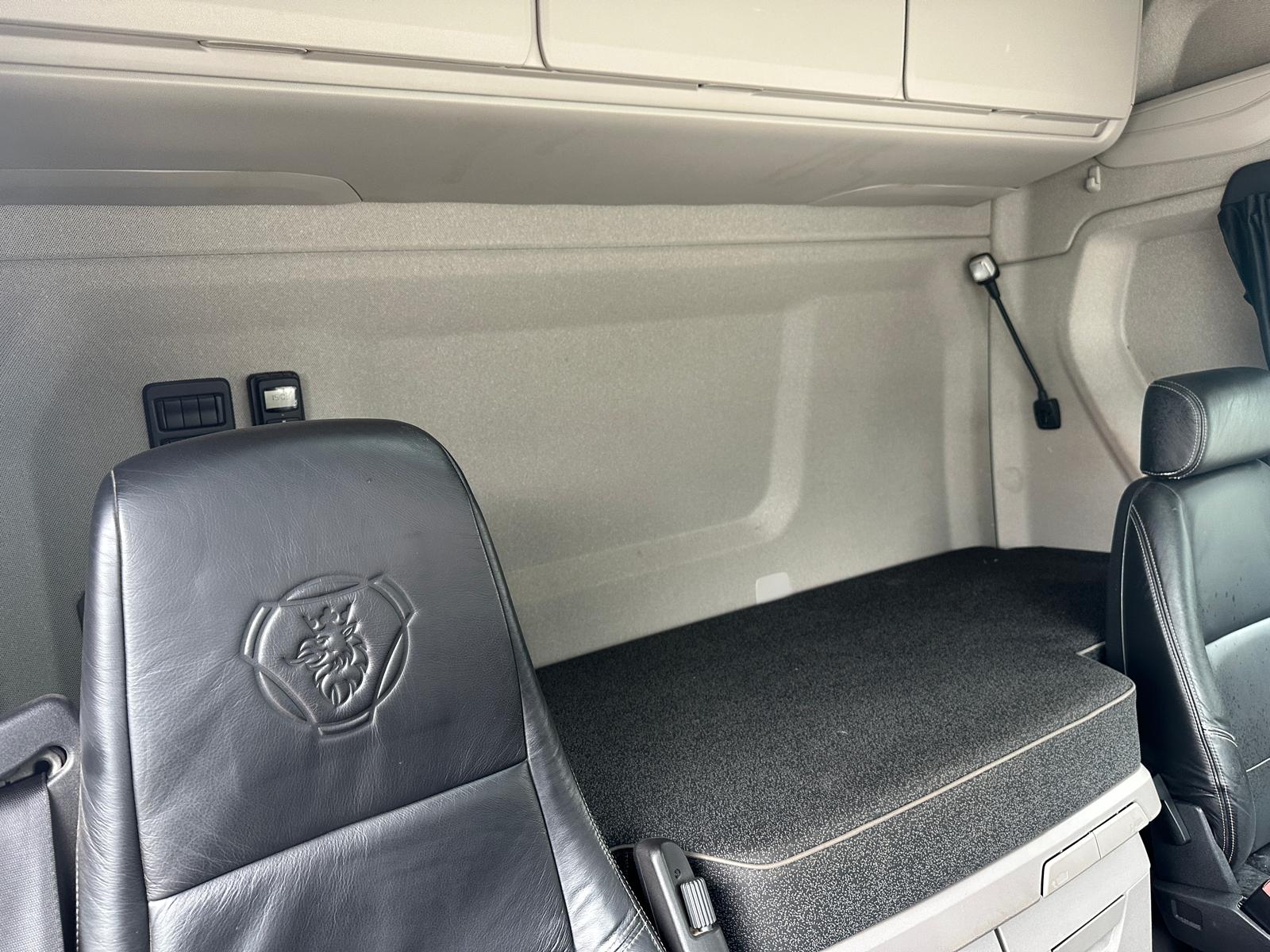 Leather Interior, Fridge, Sky lights & Fog lights, Scania Premium Infotainment System, Single bunk with Rear Lockers, Hydraulics, Side Skirts