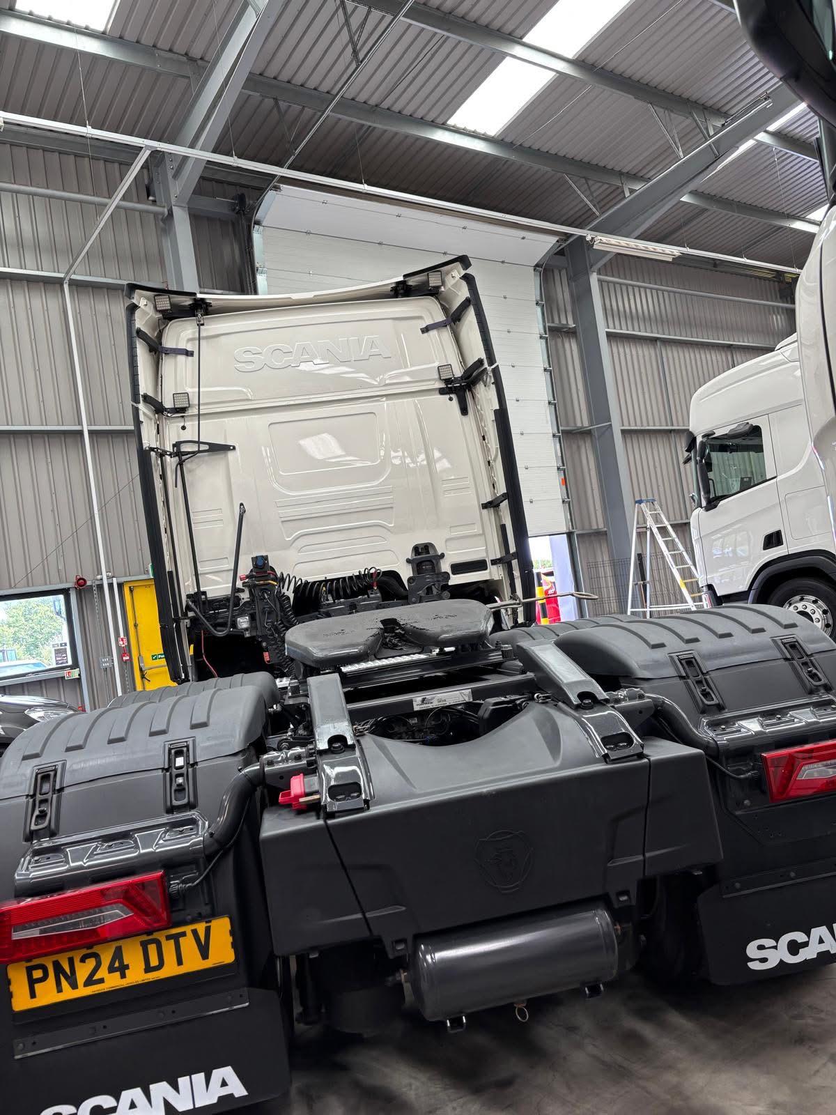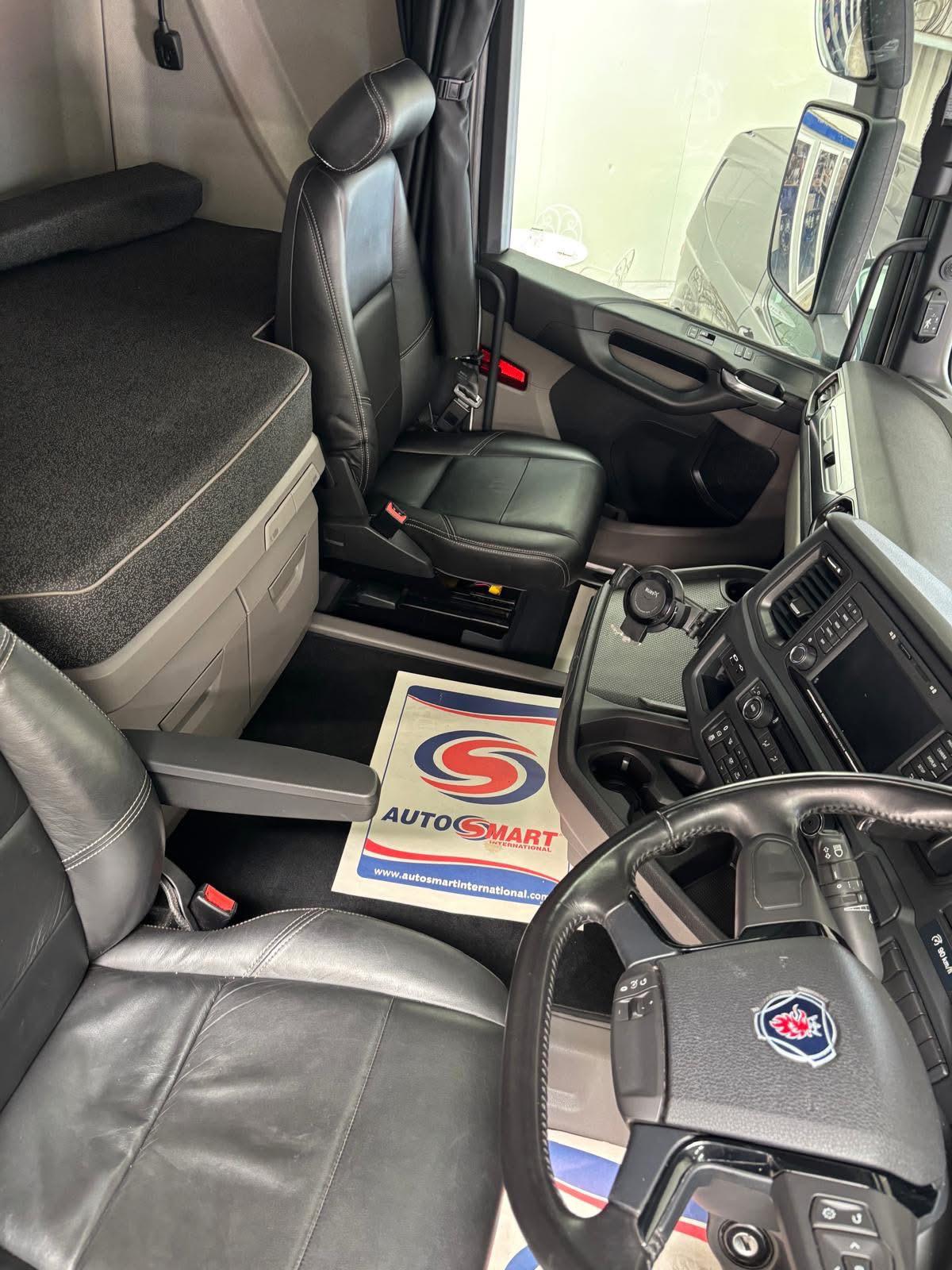 Leather seats, Fridge, Sky lights & Fog lights, Scania Premium Infotainment System, Single Bunk with Rear Lockers, Side Skirts, Phone Holder