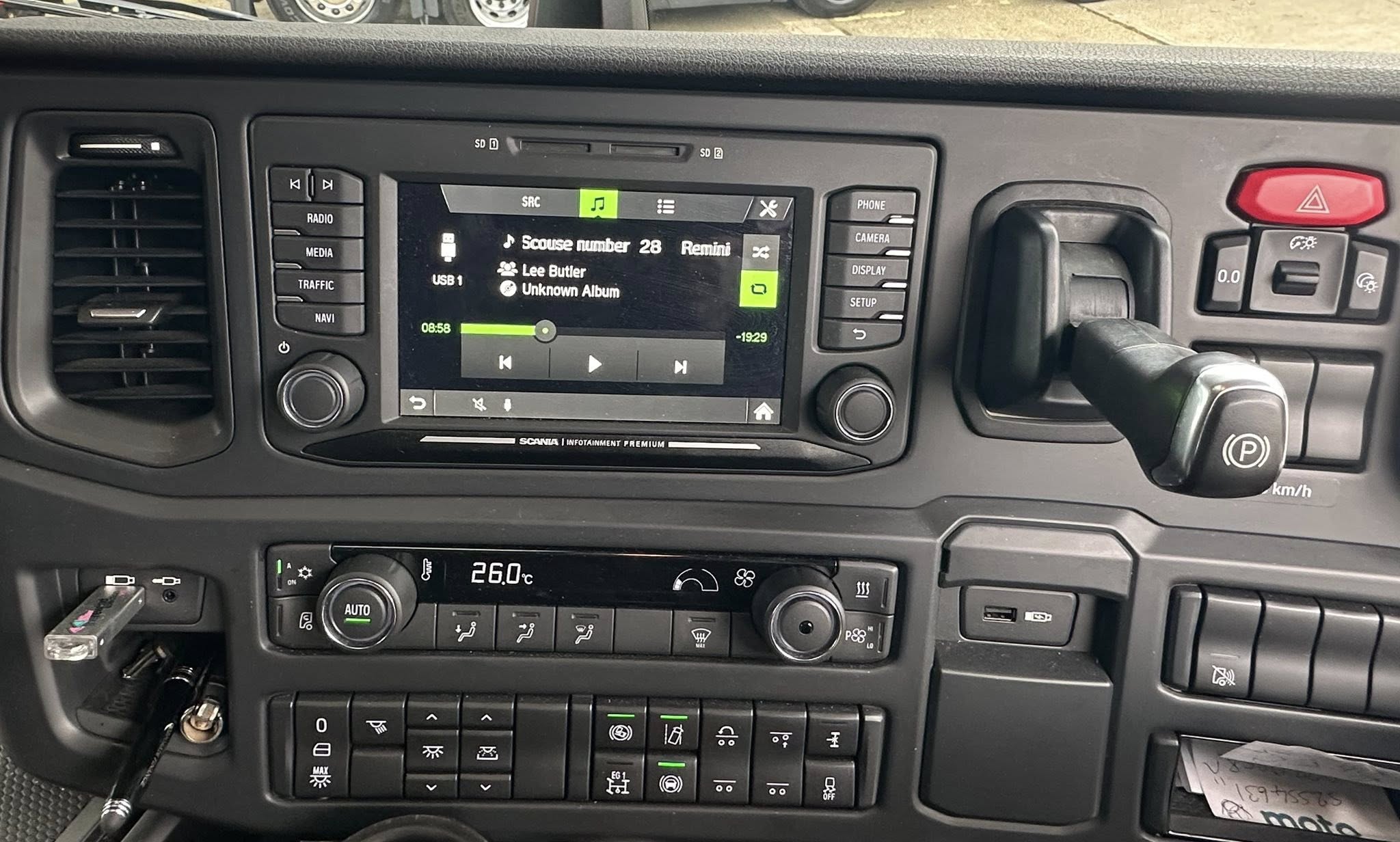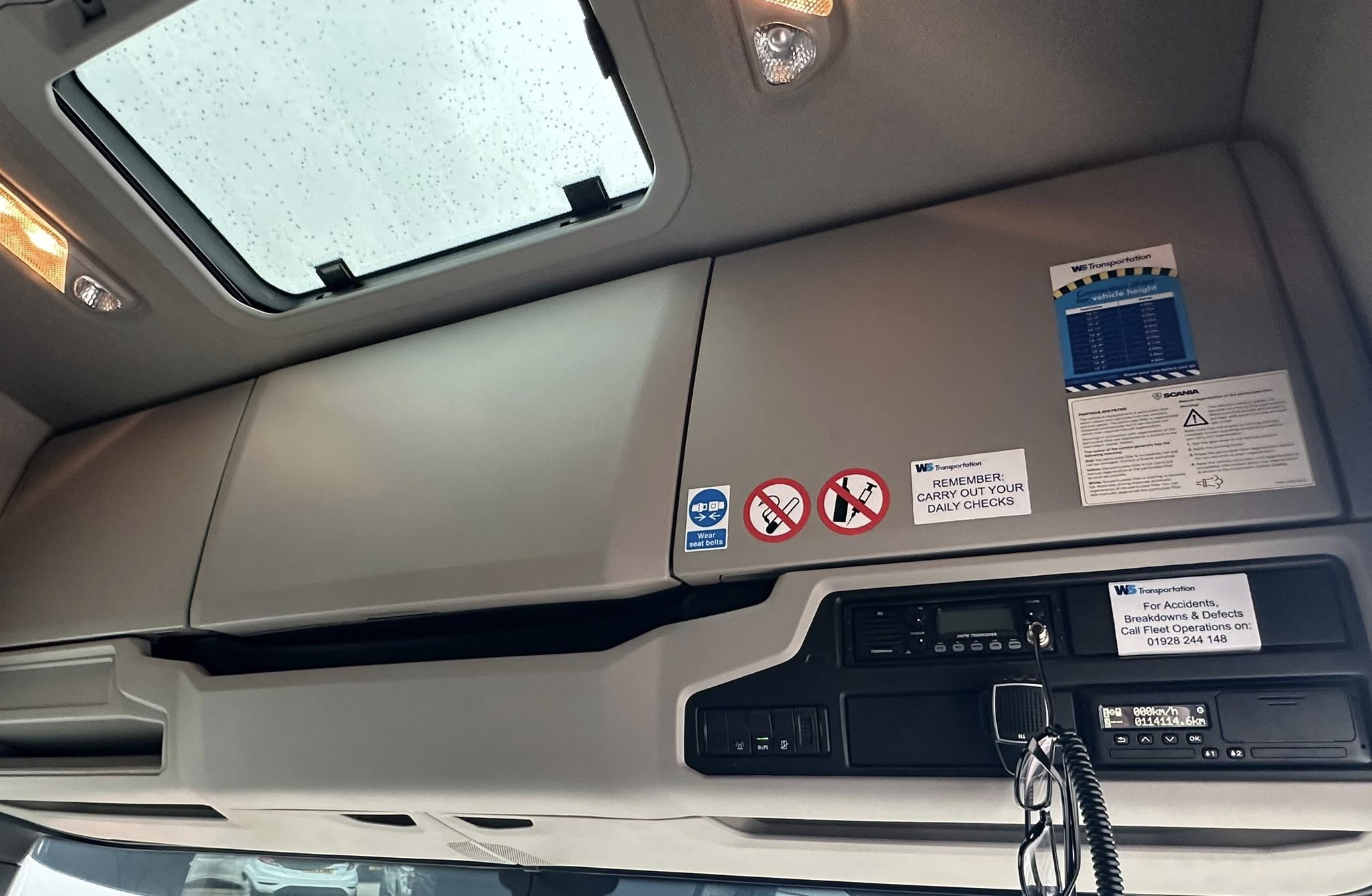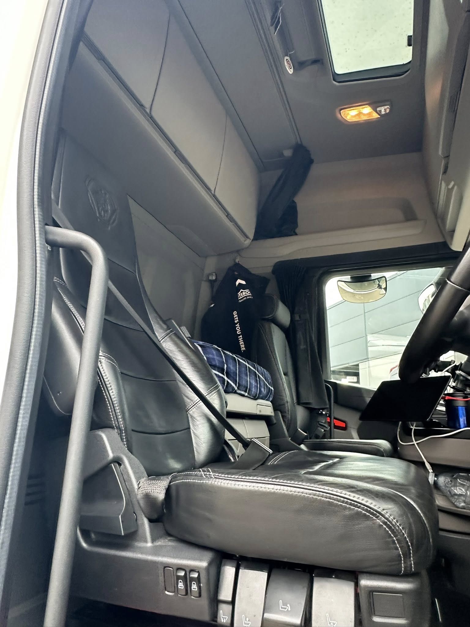 5 stage engine brake, Leather Interior, Scania Premium Infotainment System, Fridge, N/s chassis locker, Sky lights and fog lights, Beacons & strobes, Rear worklights, Anderson connection, Inverter, Alcoa Durabrights, Single Bunk with Rear Lockers