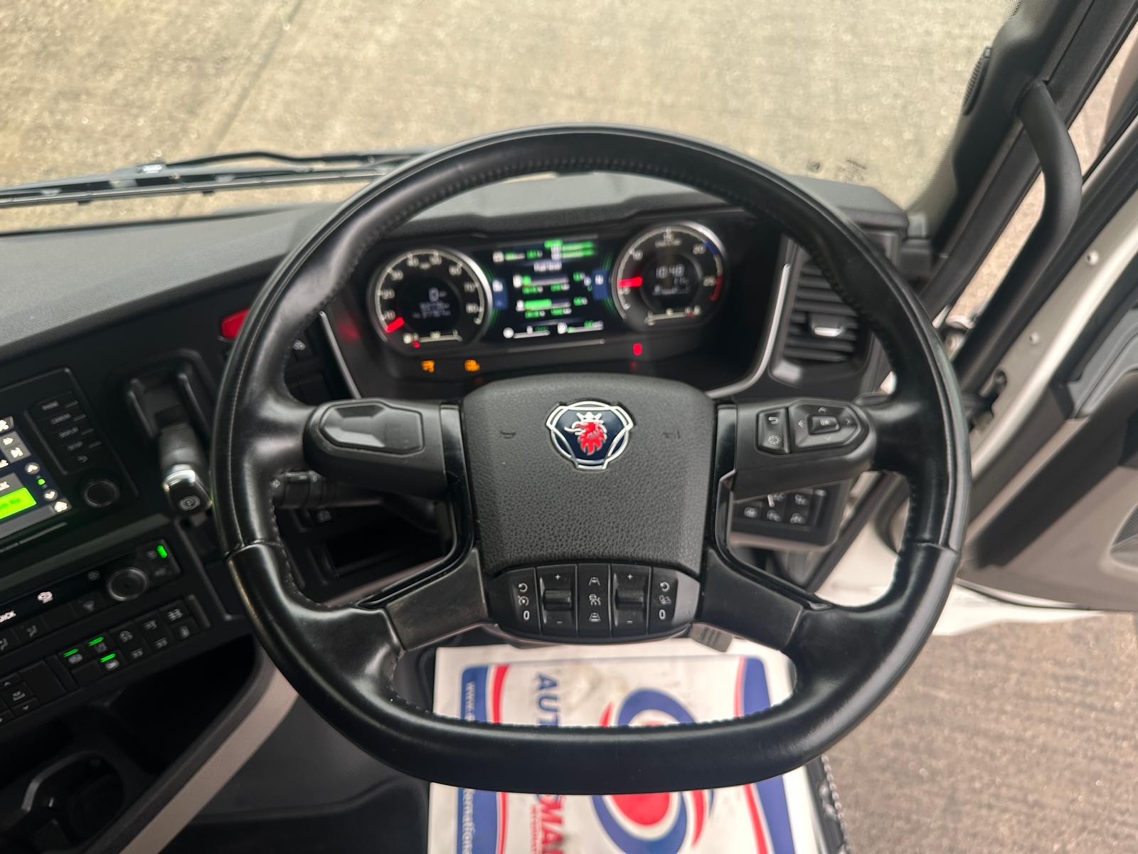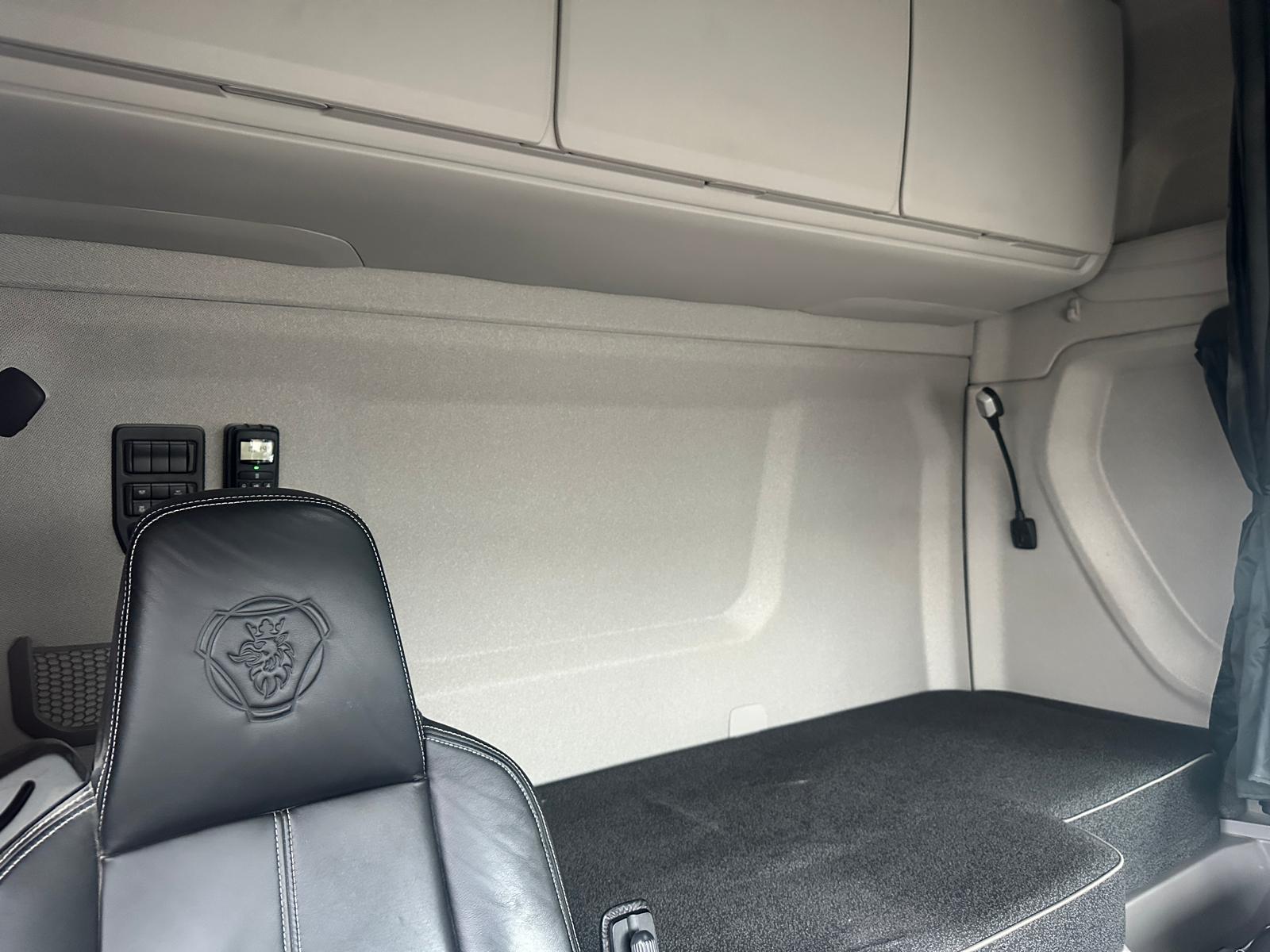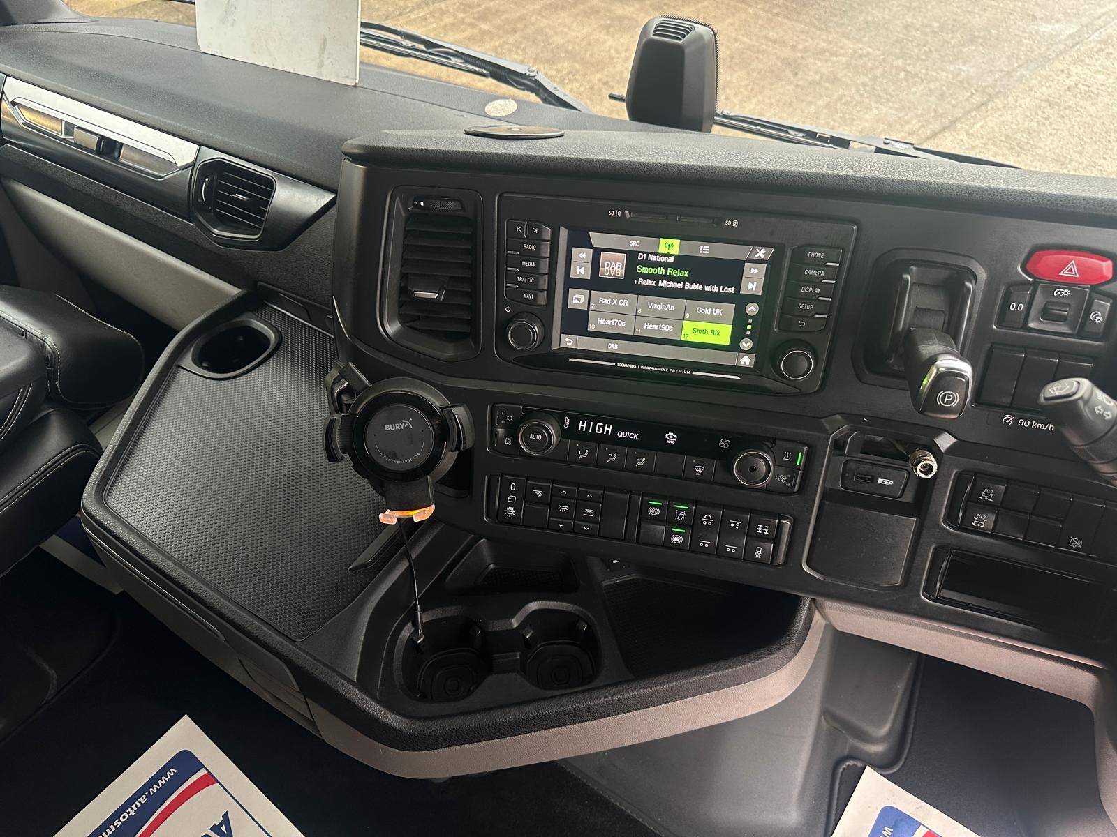 Full Air Suspension, Double Drive Capabilities, Retarder, Inverter, LED Headlines, PTO Prepped, Leather Interior, Scania Premium Infotainment System, Fridge, Side skirt, Chassis Locker, Sky lights and fog lights, Single Bunk with Rear Lockers, Beacons and Strobes, Phone Holder, CB Radio
