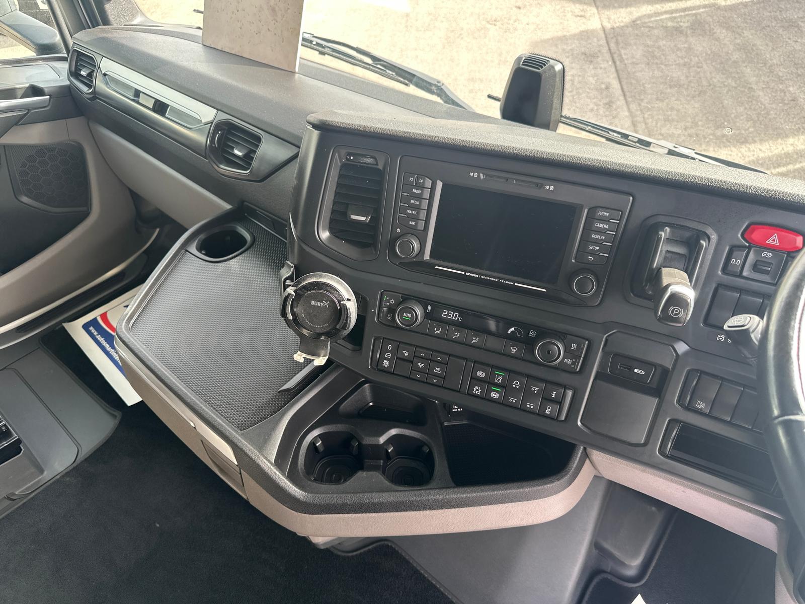 Leather Interior, Scania Premium Infotainment System, Fridge, Side skirt, Chassis Locker, Sky lights and fog lights, Single Bunk with Rear Lockers, Beacons and Strobes, Phone Holder, CB Radio