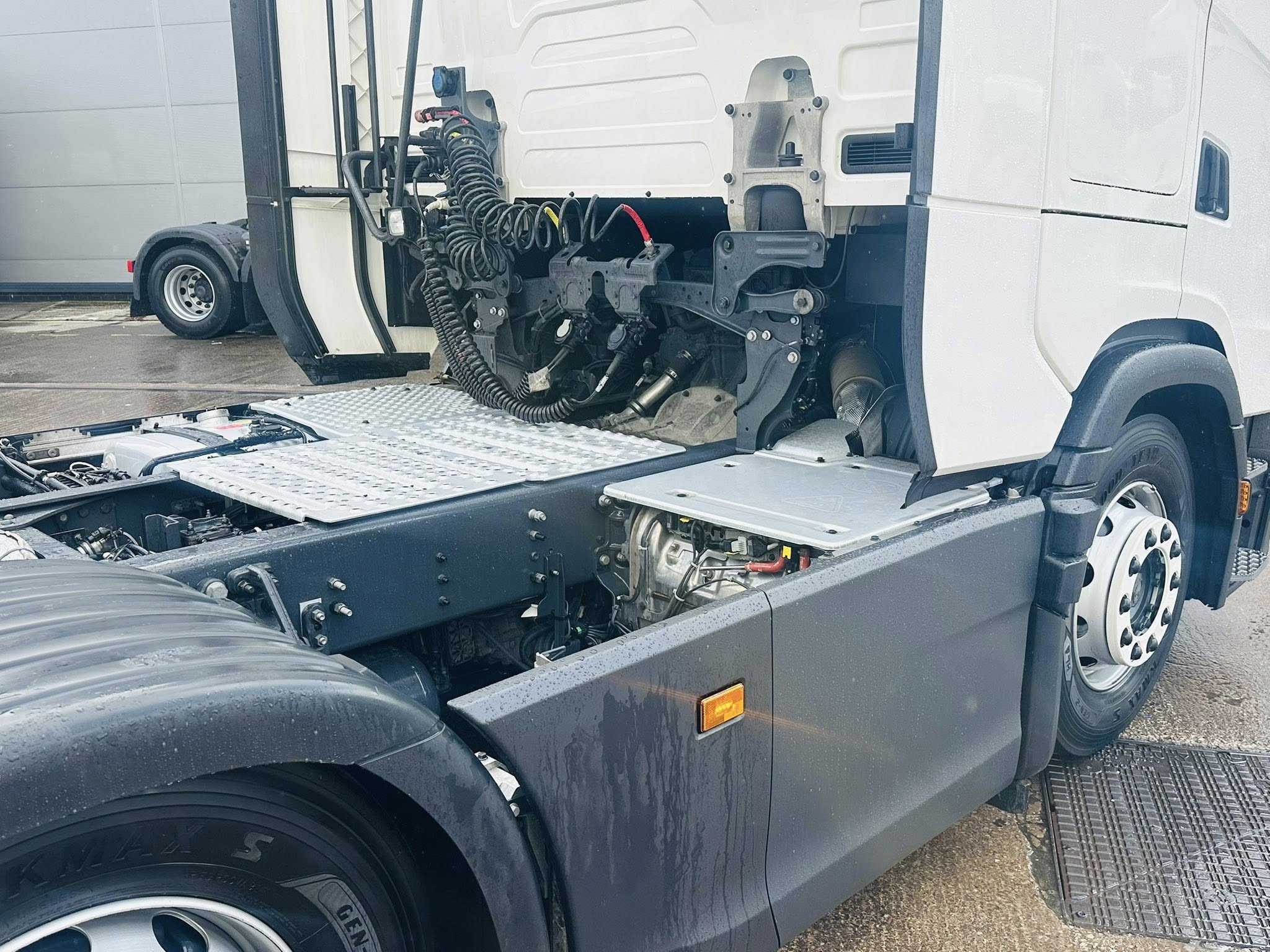 Front and rear air suspension, Leather interior, Retarder, LED headlights, Fridge, Rear mounted batteries, Premium Radio, GSR Dashboard, Immaculate Condition